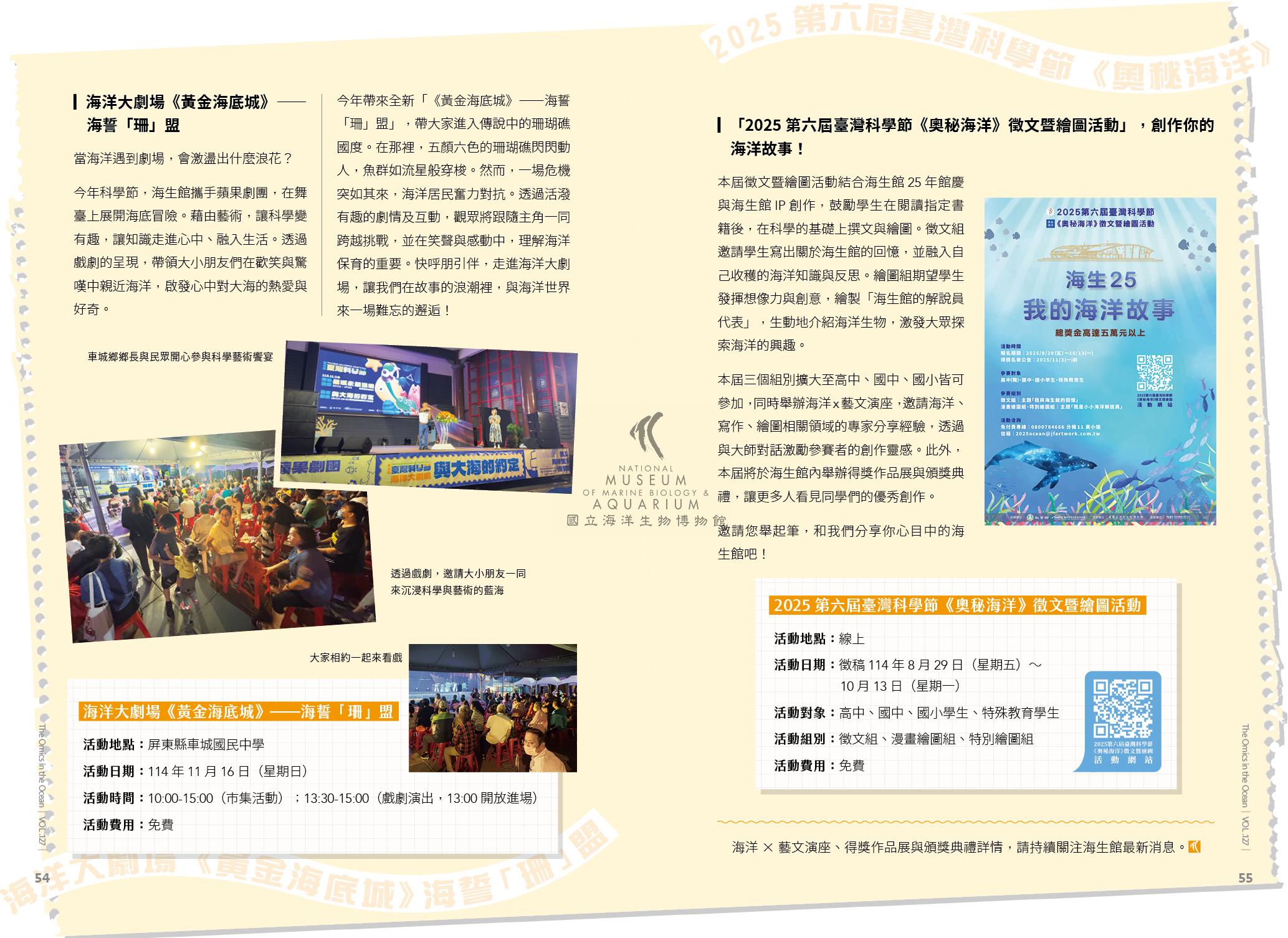海洋×藝文演座、得獎作品展與頒獎典禮詳情,請持續關注海生館最新消息。