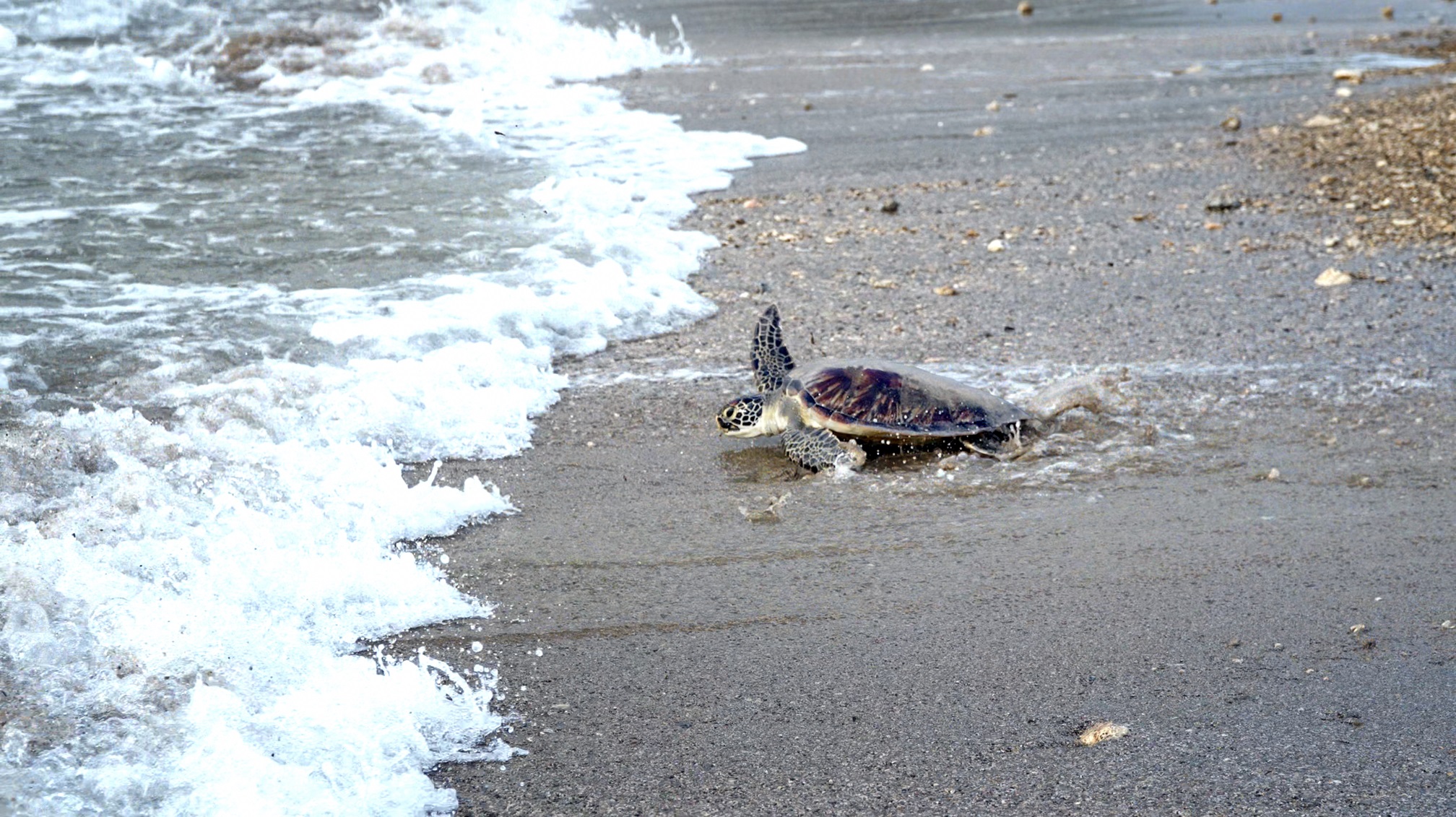 國立海洋生物博物館(以下簡稱海生館)於 1 月 23 日在屏東後灣沙灘,攜手玉山銀行、後灣社區居民、海巡署及海洋保育署,共同舉辦海洋保育宣導暨海龜野放活動。在海巡人員的專業戒護下,眾人親眼見證康復後的保育類「綠蠵龜」及「欖蠵龜」重返大海擁抱。