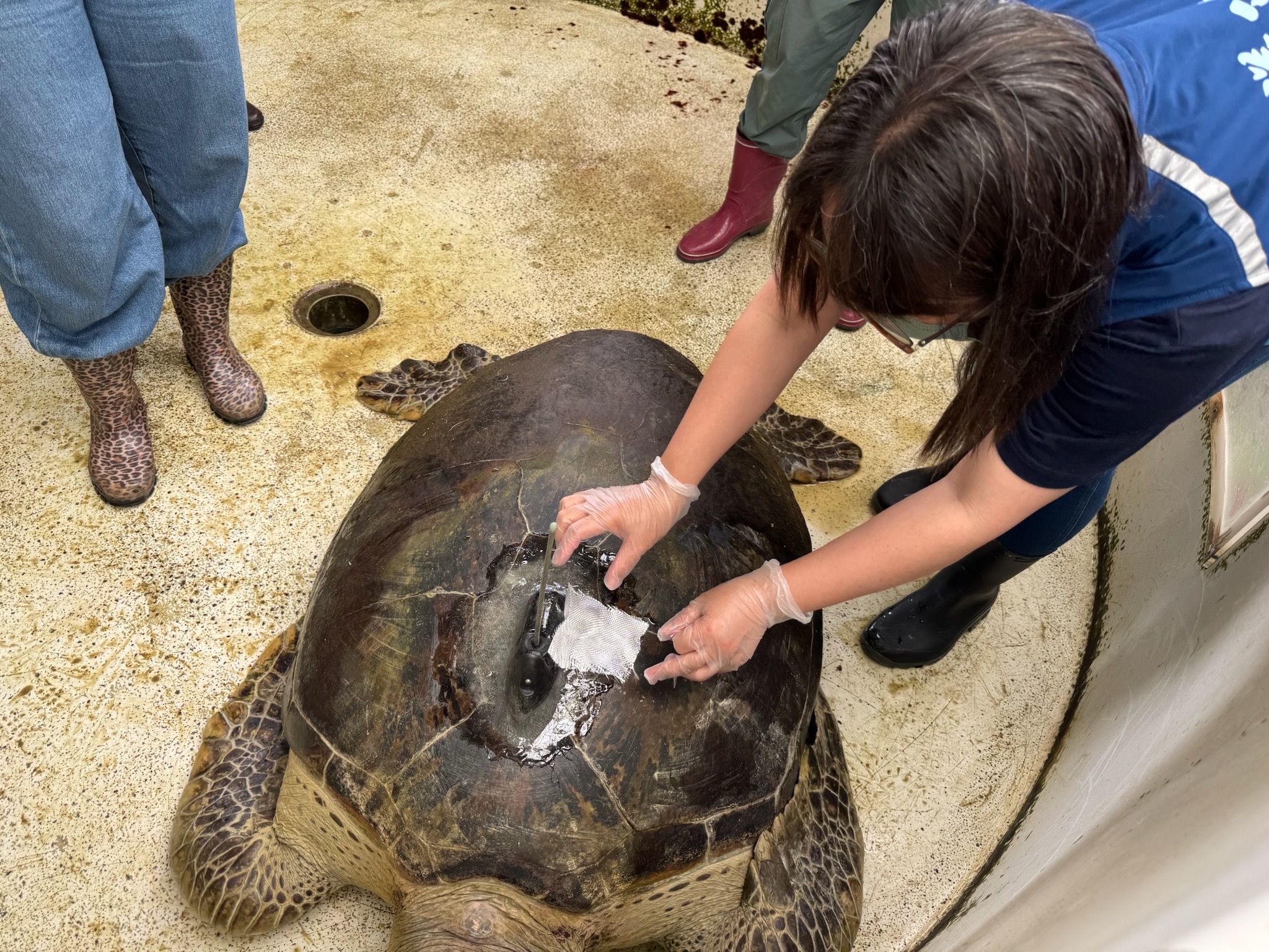 此次野放的綠蠵龜來自屏東小琉球,曲線背甲長103公分,曲線背甲寬91公分,重144公斤,屬於較為少見的成年綠蠵龜個體。該龜於114年2月18日由海保署「海洋保育類野生動物救援組織網 (MARN)」通報,發現其背甲有明顯外傷,並於中澳沙灘的潮間帶載浮載沉後擱淺。在海保署及海巡同仁的齊心協力下,將海龜自沙灘搬運至碼頭,後續送往海生館進行醫療照護。在經歷一年多獸醫師的治療後,外傷已完全癒合,各項指標已達野放標準,野放前海生館於背甲上安裝衛星發報器,以利後續科學追蹤與資料蒐集。